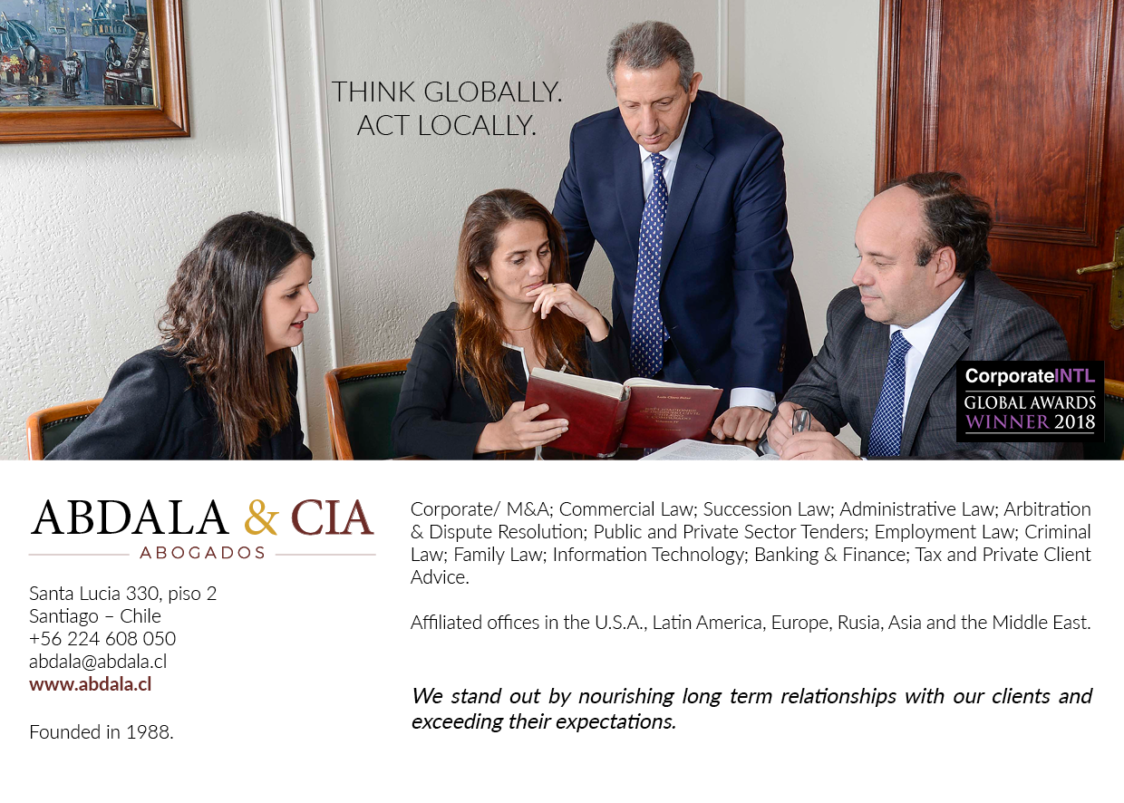 27 Apr Abdala & Cia., ha sido nombrada la firma chilena del año en la práctica de Gobierno Corporativo por Corporate INTL Global Awards 2018. Posted at 17:12h in Noticias Sobre la Firma & Eventos by Abdala Share Leer Mas